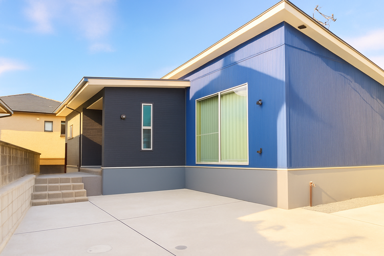 耐久性とデザイン性を兼ね備えたガルバリウム外壁を採用。シンプルながら存在感のある外観に仕上げ、長く美しく住み続けられるメンテナンス性と耐久性を備えた住まいです。
